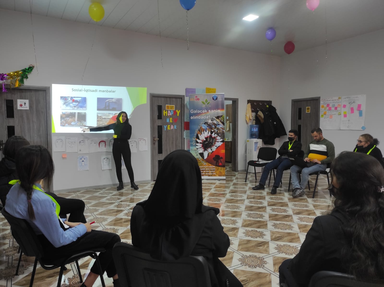 Təlim zamanı iştirakçılara "Ekoloji problemləri yaradan mənbələr", "Azərbaycanda olan ekoloji problemlər" və "Ekoloji problemlərin həll yolları" barəsində məlumatlar verilib. Təlimin sonunda isə "Ekologiya" ilə bağlı video izlənilib və video ətrafında müzakirələr aparılıb.