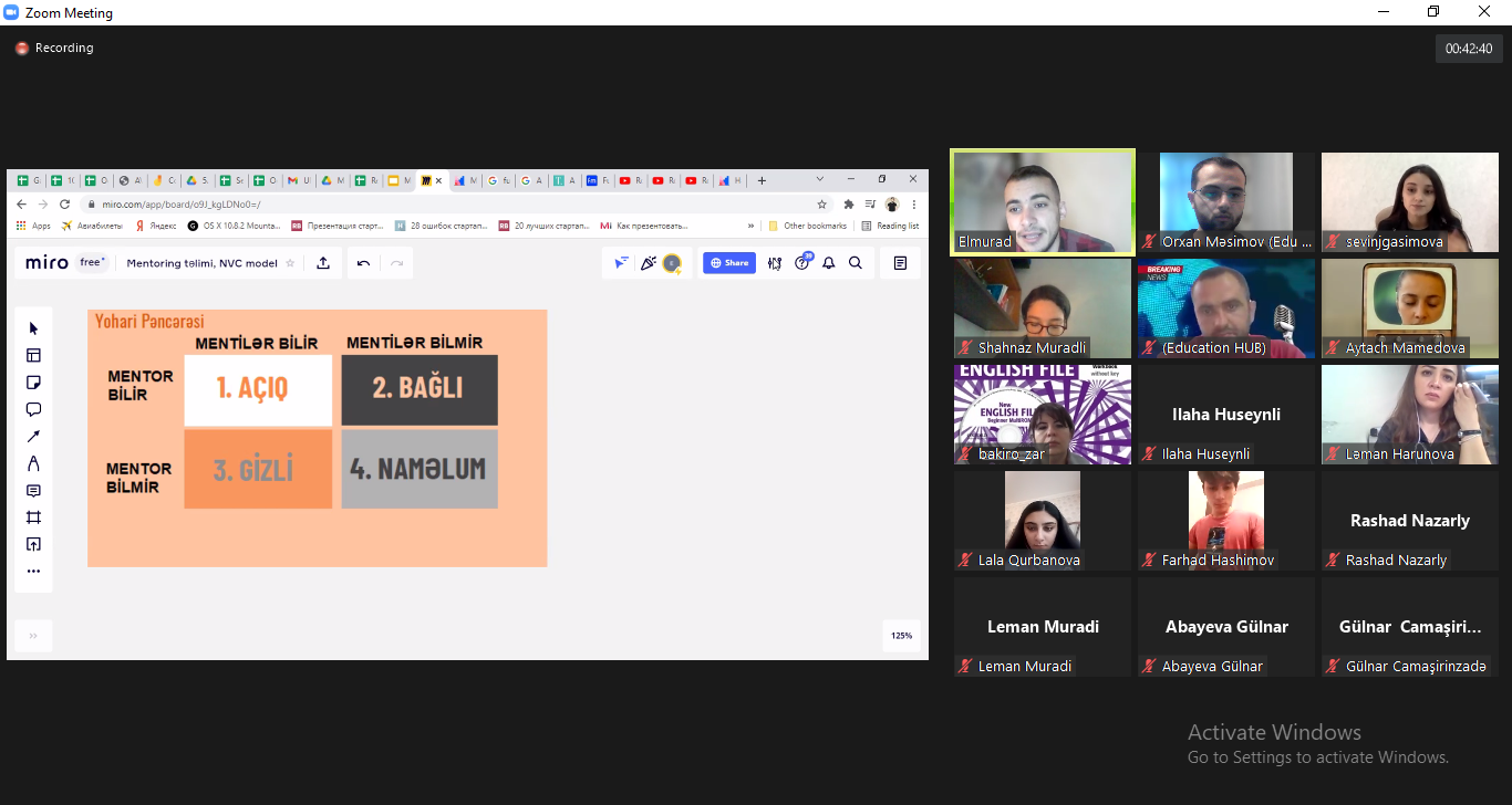 “Yarat, inkişaf et, töhfə ver (Gənclərin İnkişaf yolu)” layihəsi çərçivəsində 2-4 noyabr tarixlərində Bakı və Sumqayıtdan olan iştirakçılar və mentorlar üçün refleksiya təlimləri yekunlaşıb. Sessiyalar zamanı gənclər həyata keçirdikləri təşəbbüslərin nəticələrini müzakirə edib, öyrənmə prosesi zamanı qarşılaşdıqları çətinliklər və uğurlar paylaşılıb. Eyni zamanda təşəbbüslərin nəticələrini ictimayətə paylaşmaq üçün hazırlıq işlərinə başlanılıb.