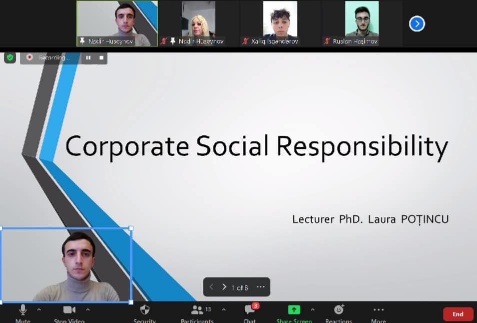 Təlim müddətində təlimçi Laura Potinku "Corporate Social Responsibility" mövzusunda iştirakçılara təlim keçib. Təlimin sonunda iştirakçıların sualları cavablandırılıb.